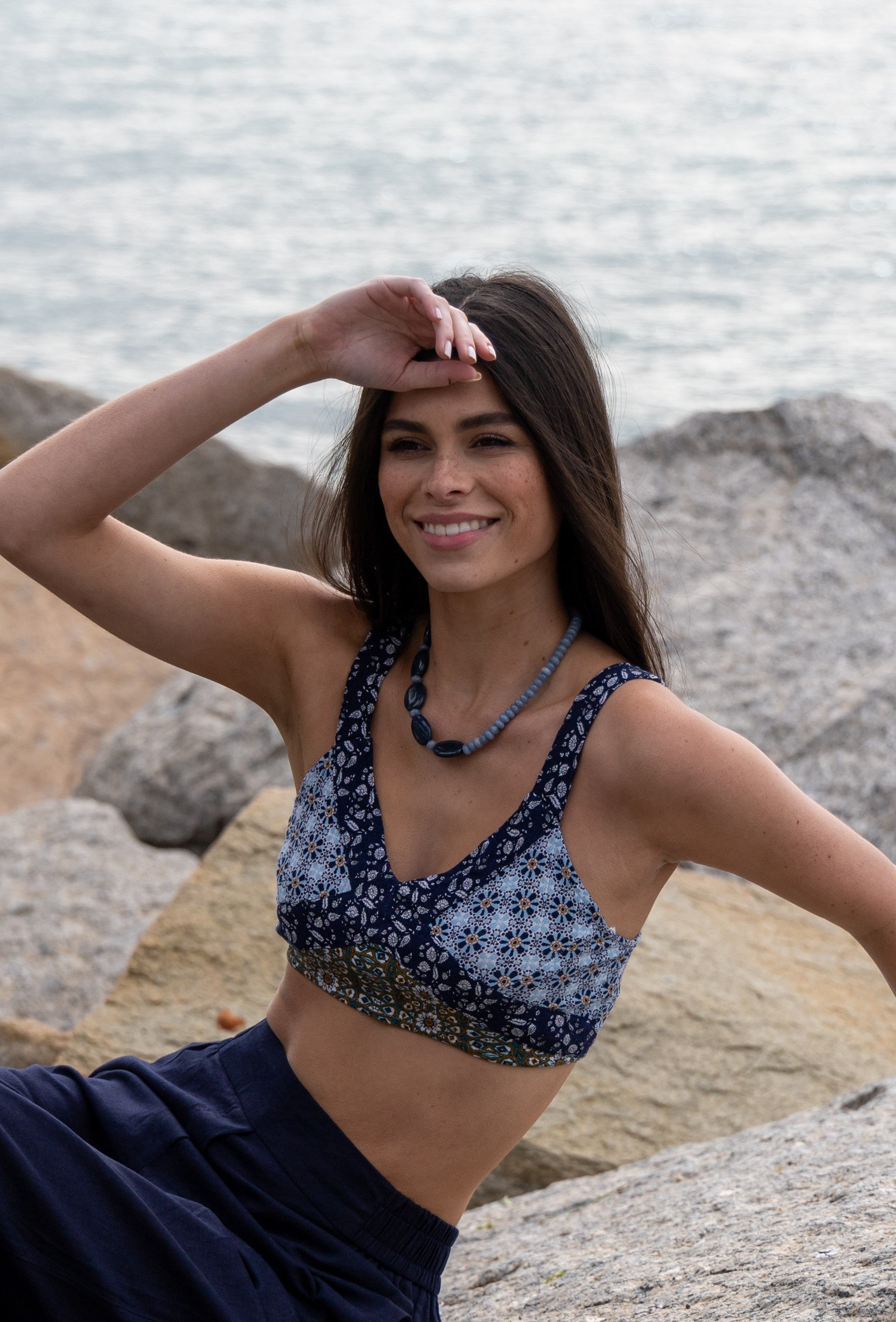 Introducing the Petra Necklace—a tribute to the ocean's serene beauty. Crafted with exquisite dumortierite and blue aventurine, it captures the sea's depth through its captivating blend of dark and light blue tones.