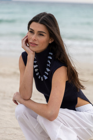 Dive into the mesmerizing depths of our Resort '24 Collection, an ode to the ocean's enchanting hues. Immerse yourself in the tranquil blues that mirror the vastness of the sea, embrace the depths of deep forest green reminiscent of mysterious underwater realms, and bask in the twilight allure of a purple sky, echoing the ocean's ever-changing moods.